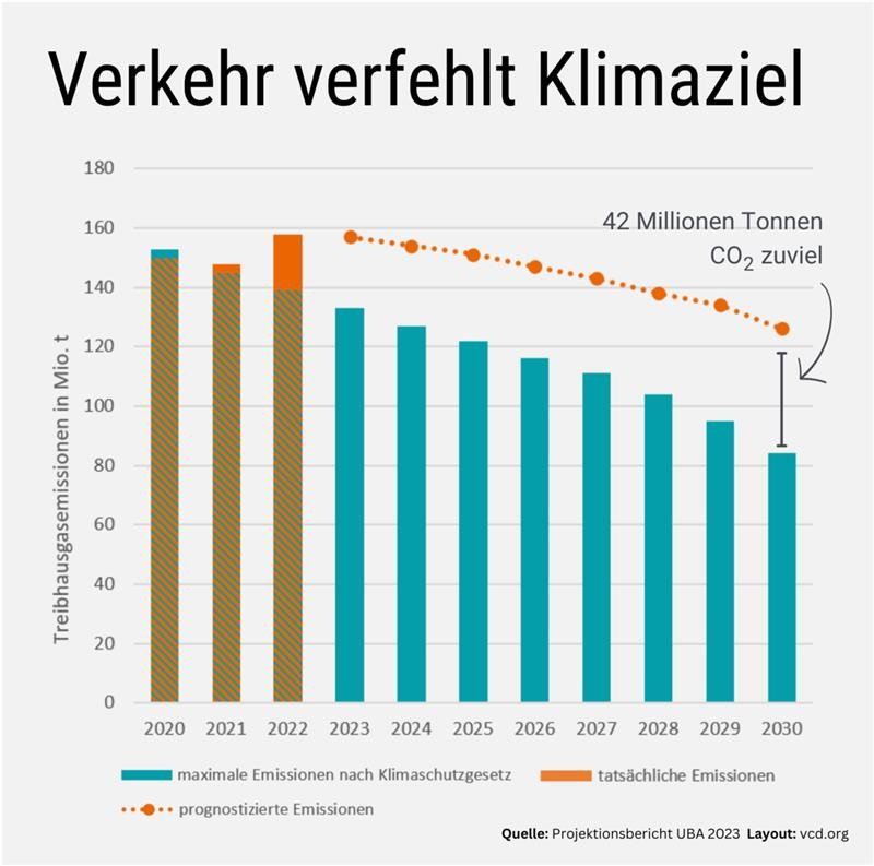 Aber, so plädiert der VCD, auch ein Tankschiff könne seine Fahrtrichtung ändern, notfalls in einem langwierigen Manöver. Dazu müssten auf der Kommandobrücke entsprechende Anweisungen gegeben werden, damit der Schiffsantrieb die Massenträgheit überwindet und die Wende des Tankers einleitet. Konkret: Straßenausbauten werden, so der VCD, immer noch im Geiste des Wachstums des Autoverkehrs vergangener Jahrzehnte geplant und durchgeführt. Es werde ein zukünftiger Bedarf an motorisiertem Individual- und Straßengüterverkehr unterstellt, der im Widerspruch zu dem stehe, was nach dem Pariser Klimaschutzabkommen und dem deutschen Klimaschutzgesetz in Deutschland noch realisiert werden dürfe. Im Ergebnis würde durch autofreundliche Bedingungen genau der Autoverkehr erzeugt, der als Selbstläufer prognostiziert wurde. Die Bedürfnisse von Zu-Fuß-Gehenden und Radfahrenden nach freier und sicherer Bewegung sowie die Ziele des Klimaschutzes werden dabei ignoriert.