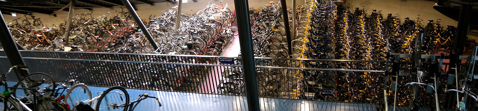 Der Radverkehr in Utrecht fließt in einer hierzulande (noch) nicht vorstellbaren Größenordnung durch die City, 120.000 Fahrten mir dem Rad finden im Durchschnitt am Tag statt, der Radverkehrsanteil beträgt über 50 Prozent. Allein die Fahrradparkhäuser im Umfeld des Bahnhofs von Utrecht sollen bald über 30.000 Stellplätze bereit halten – gegenüber den 1200 Plätzen des kommenden Fahrradparkhauses in Mainz. Ein Fahrradparkhaus-Leitsystem führt die Radelnden zu den stets gesuchten freien Abstellorten.