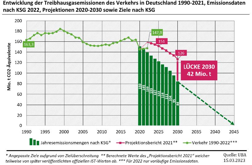 Die Projektionskurve der CO2-Emissionen des Verkehrs in Deutschland verläuft übrigens genau so, wie die Projektion der globalen CO2-Emssionen bzw. der resultierenden globalen Erwärmung [siehe Graphik in Kurzartikel]. Stramm in Richtung einer 3-Grad-Welt.