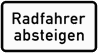 Die Aufforderung "Radfahrer absteigen" selbst stellt schon ein Rätsel. Sie richtet sich an Radfahrer. Ein Radfahrer, der ihr nachgekommen ist, ist aber gar kein Radfahrer mehr, sondern ein Fußgänger, der noch ein Fahrzeug nämlich ein Fahrrad mitführt. An ihn ist die Aufforderung nicht gerichtet. Er kann also wieder auf das Fahrrad, das er dabei hat, steigen und davonfahren? Oder ist er dann doch wieder Adressat des Schildes, dessen Wortlaut er bereits nachgekommen ist? Wann und wo darf denn der "Fußgänger aufsteigen"? Ein Pendant des Zeichens, das eine derartige Anordnung trifft, gibt es nicht. Muss also der Radfahrer auf ewig abgestiegen bleiben? Soll er ein Stück schieben? Wie weit ist dieses Stück?