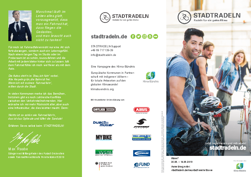 Bitte meldet euch mit Partnern und Kindern beim Stadtradeln an und überzeugt Verwandtschaft und Nachbarn.