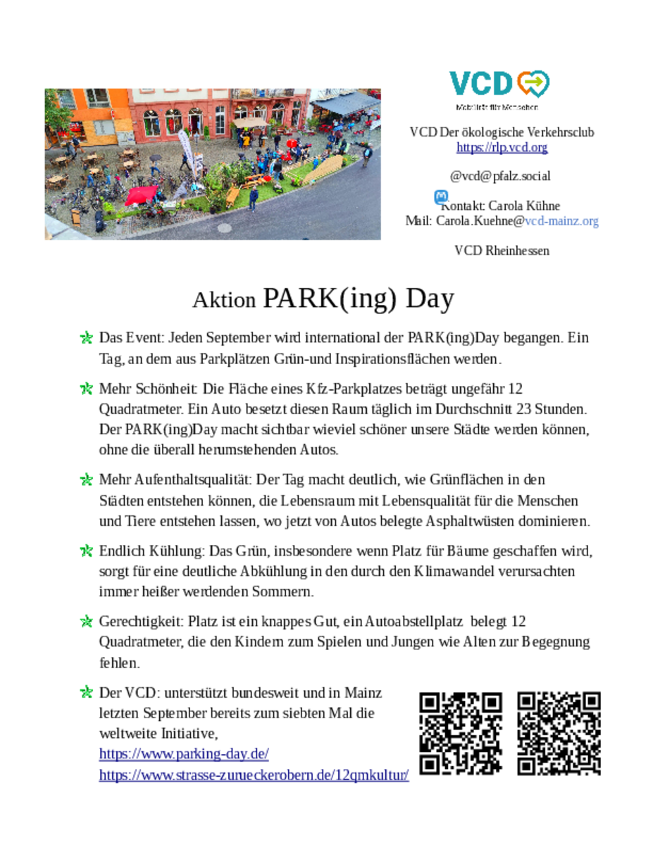 Das Event: Jeden September wird international der PARK(ing)Day begangen. Ein Tag, an dem aus Parkplätzen Grün-und Inspirationsflächen werden.